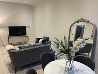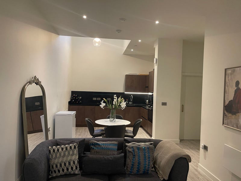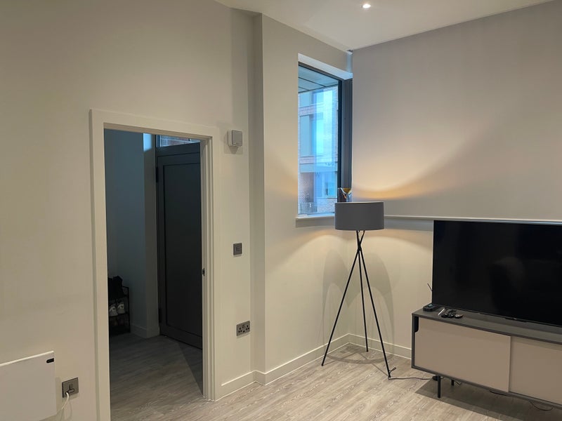 The apartment is in the Botanica Apartment building, just a 5-minute walk from Cornbrook Tram Station. It’s a gorgeous townhouse-style modern apartment with high ceilings and a gallery view that makes it feel so open and airy. There are 3 modern bathrooms, 2 spacious bedrooms, 2 storage closets, and direct access to a balcony, which is perfect for a little fresh air or a quiet moment outside.