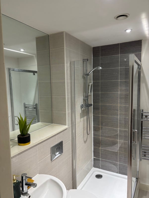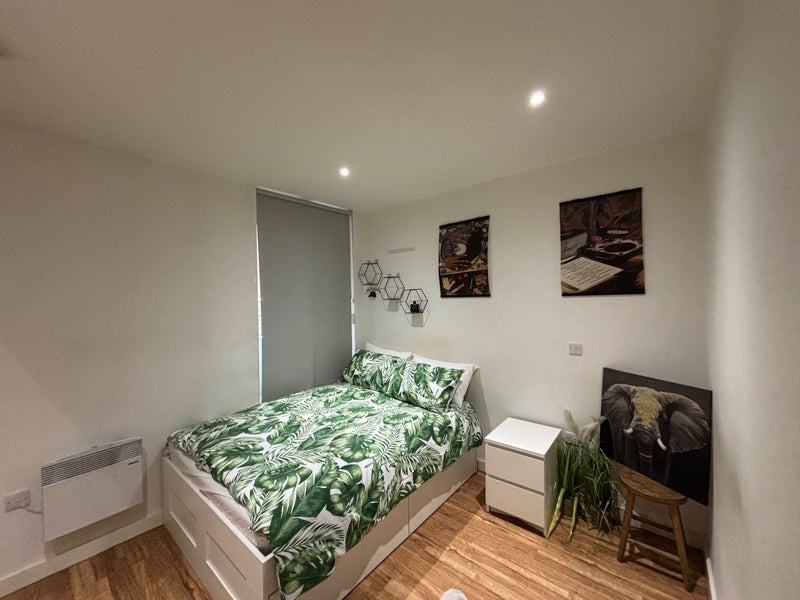 The apartment is located in Salford Quays, with the tram stop right opposite — it’s only about 15 minutes into the city centre, which is super convenient. We’re also really well located for lifestyle: there’s a park nearby, grocery stores like Lidl within walking distance, and MediaCityUK is just a 10-minute walk away where you’ll find restaurants, a cinema, and a great social vibe. There’s even a run club around here if you’re into that kind of thing.