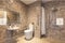 Ensuite bathroom with rainfall shower, toilet, sink, storage and mirror