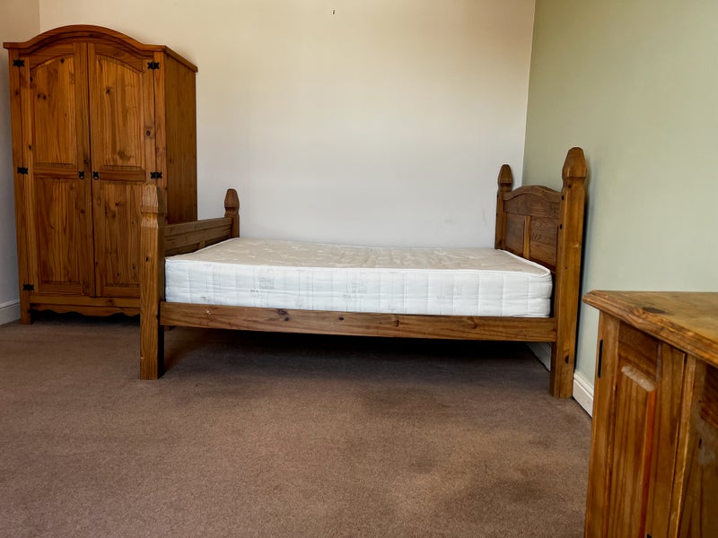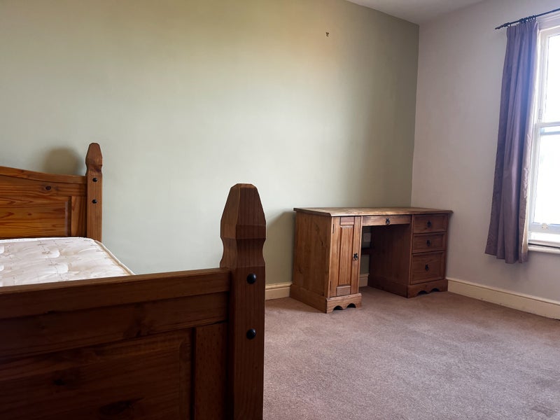 This room comes with double bed, double wardrobe, chest of drawers, desk and chair, full length wall hung mirror, double USB wall sockets and blackout curtains to window.