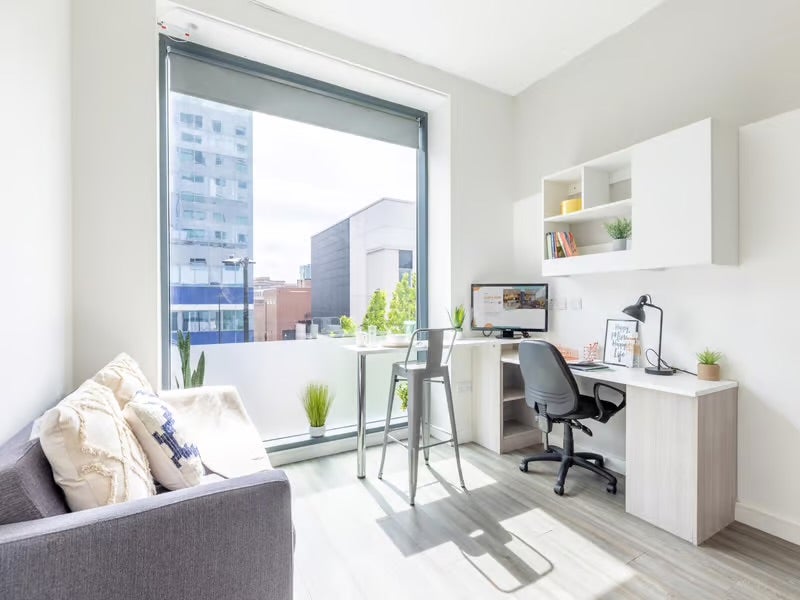Gold Plus Studio’s are larger in size than Gold option and come fully-furnished with your own en-suite bathroom, double bed, a study desk with a chair, storage space and your own TV. You’ll even have your own modern kitchenette and breakfast bar to host friends within your self-contained apartment. You can maximise the social opportunities at Redvers Tower by heading down to the common room, cinema, gym, or bar space. **Double Occupancy is available for an extra charge. Book now for the next academic year!