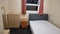 BEDROOM 4 Single iron frame bed memory foam mattress whitewash walls computer desk drawers.