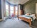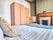 Fully furnished with double bed, desk, double wardrobe, shelving unit, chest of drawers, and bedside drawers.