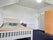 This cosy room comes fully furnished with a double bed, wardrobe, drawers, desk, chair, and shelving unit.