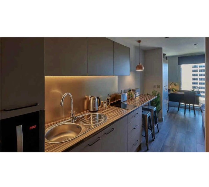 The studio is fully furnished with a bed, desk, chair, wardrobe, and a private kitchen and bathroom. The accommodation is in a great city centre location, close to the university, shops, and public transport.