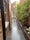 The room is located at the top of the house on the second floor , overlooking the patio to the back and patio benches and bamboos