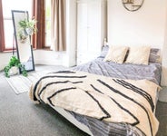 En-Suite, the bedroom includes an amazing rainfall shower and a basin. The room is spacious and super cosy. Fitted with black out curtains and comes fully furnished.