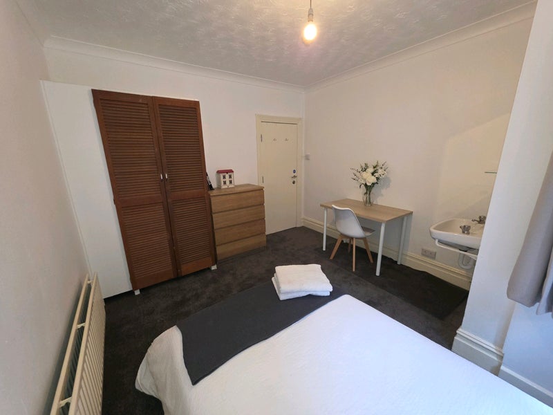 The bedrooms are huge with high ceilings and large windows bringing in a lot of natural light. Each room comes equipped with a vanity unit, mirror and new black out curtains, newly decorated & newly carpeted!!