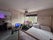 The living room has a TV unit, double sofa and swivel sofa.