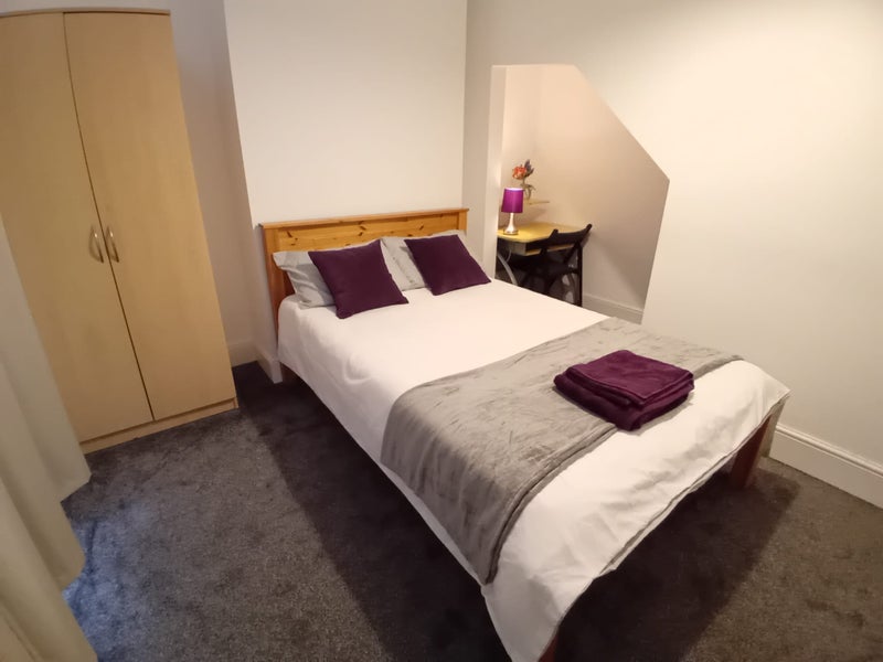 The room has new furniture and comprises a junior double bed, wardrobe, bedside cabinet and chest of drawers. There's plenty of space for a desk and chair too.