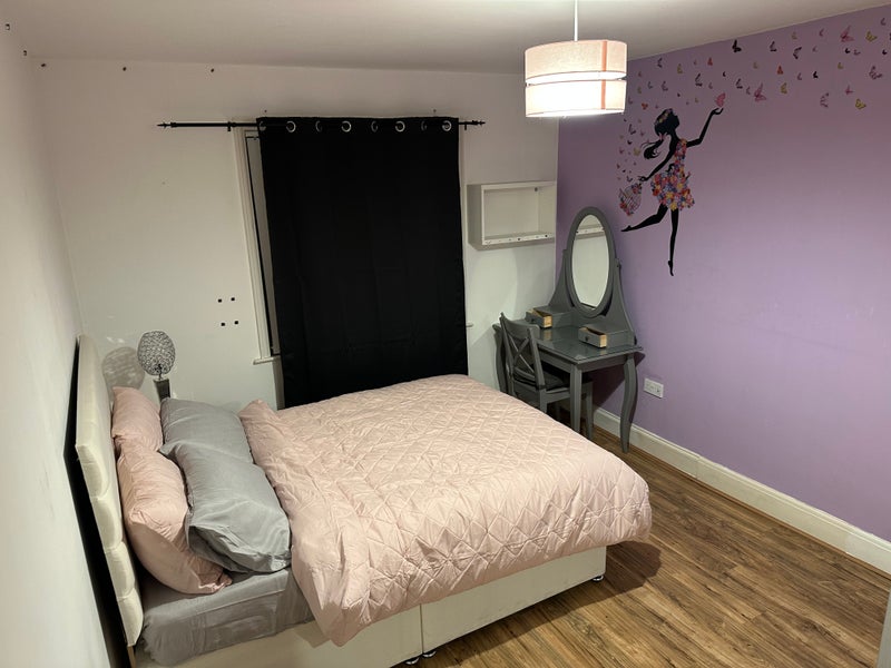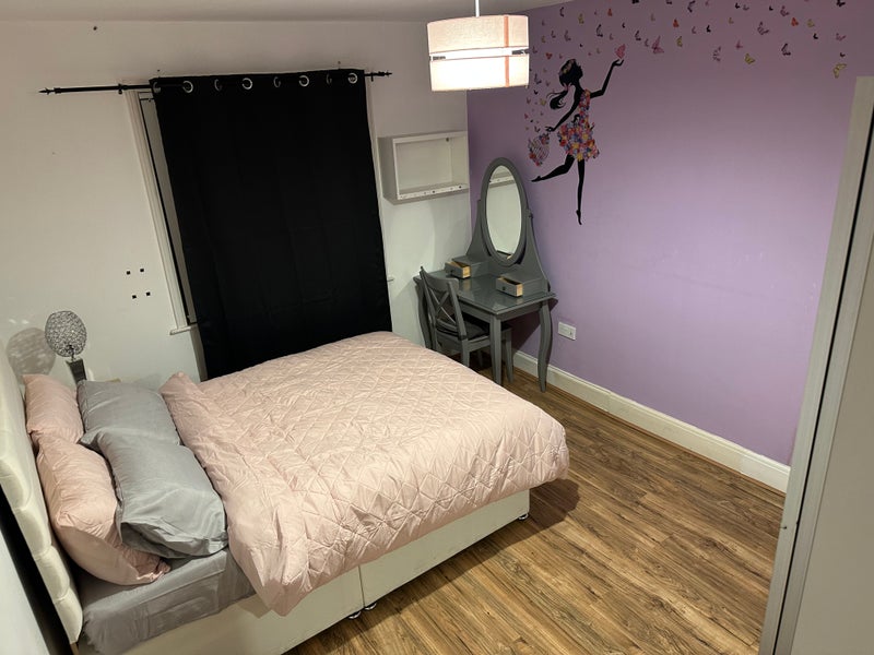 Bedroom comes with a large IKEA built-in wardrobe and dressing table with mirror. Free access to a well equipped kitchen, washing machine and dryer, air-fryer & microwave with comfortable lounge and a beautiful garden. With bathroom and toilet close to the room. there is an extra toilet downstairs.