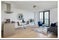 Flat includes balcony with views of canary wharf and central London, open plan kitchen and living room.