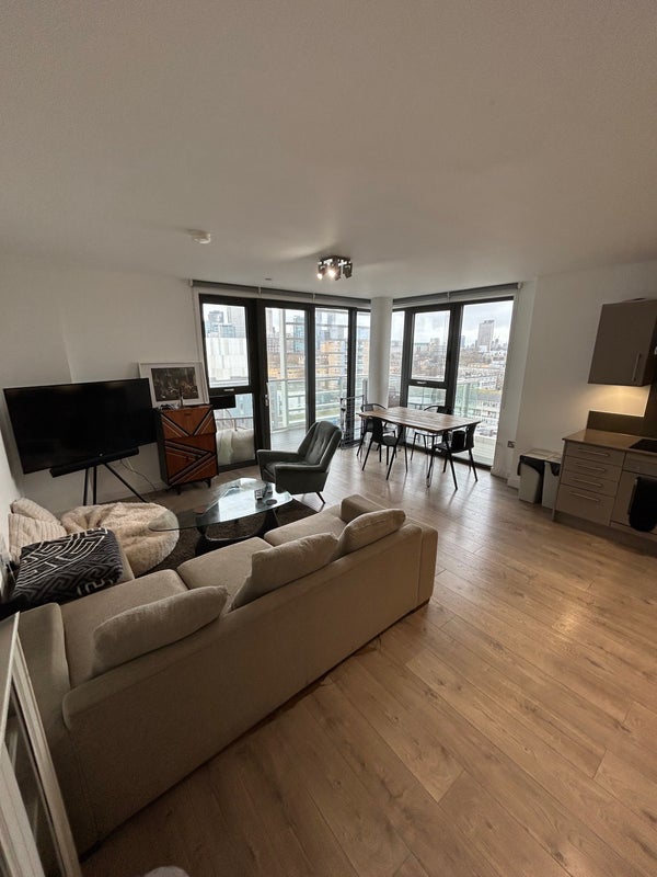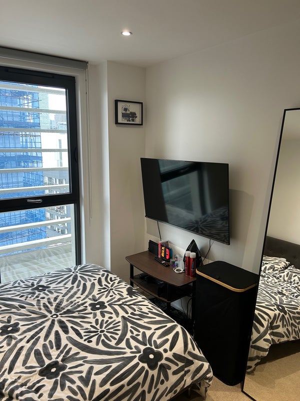 We have a bright and spacious double room available in a modern 3-bedroom flat on the 8th floor of a 22-storey new build in E14.