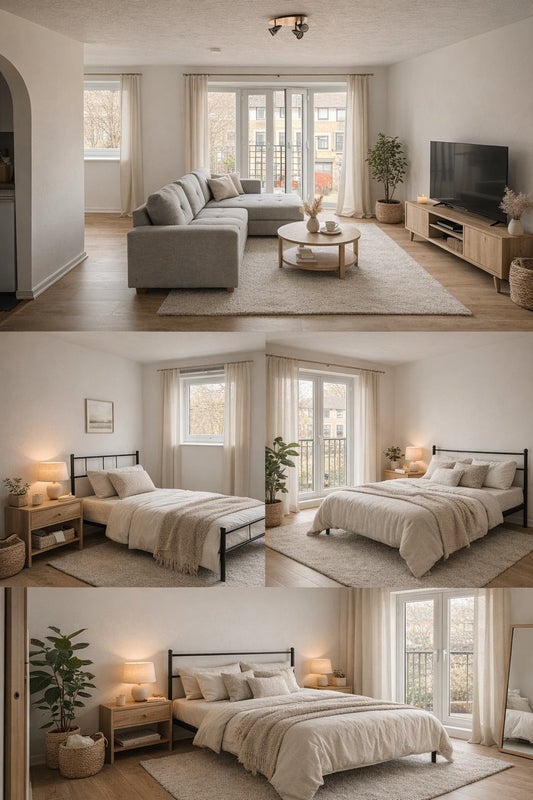 The property features 1 double bedroom and 2 single bedrooms and comes fully furnished with a fully equipped kitchen, high-speed WiFi, and all essential amenities for comfortable living.