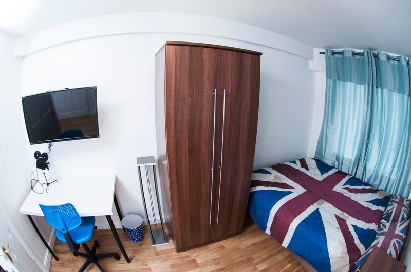 The room is fully furnished with a comfortable bed, wardrobe, desk, and plenty of storage. Large windows provide plenty of natural light, creating a bright and welcoming space. The room also benefits from a private bathroom.