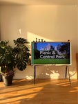 The living area includes a dedicated, professional workspace equipped with a Herman Miller chair and a height-adjustable desk. A beautiful Samsung Serif TV that provides entertainment while not disrupting the feel of the room.