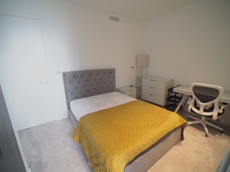 A beautifully presented, fully furnished double bedroom is available in the prestigious Wardian London development. The room benefits from a private bathroom, built-in wardrobe, and access to one of the most impressive balconies in the building — a south-facing, riverside terrace offering outstanding views of the shard, the City of London, and breathtaking sunsets.