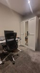 Fully furnished with a double bed, mattress, two bedside tables, and spacious wardrobe (plenty of space left to make it your own). The room doors can be locked with the key.