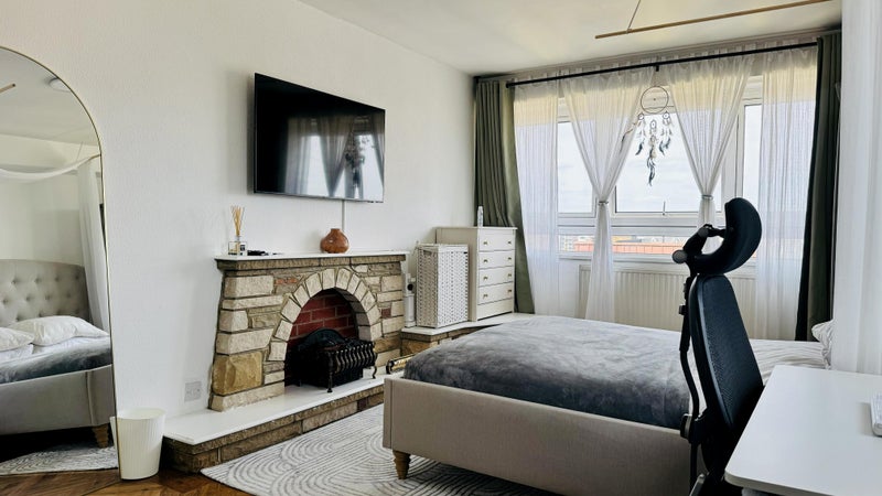 This spacious bright double room is perfectly situated, just minutes from Chancery Lane (Central line), Farringdon Station, Hatton Garden, St. Paul’s, Bank, and Covent Garden.