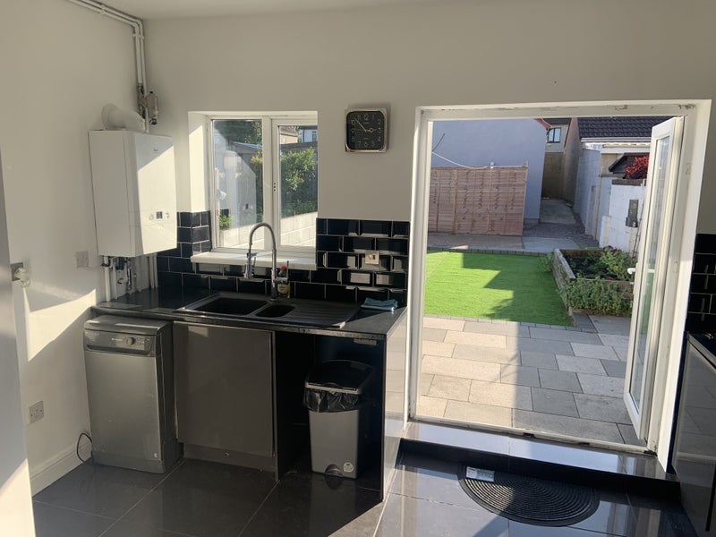 Furnished single bed room in 3 bedroom household of 2 guys who work from home (1 full time and one hybrid). Great location in Filton (North Bristol). Kitchen with table and seats, communal cooking appliances and dishwasher. Bathroom with Bath, shower, washing machine and dryer. South facing garden and garage with lots of storage room. Living area with sofa and TV.