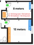 👁The video shows the 12m² space with panoramic windows that let in a lot of light; this is where I would put the living room.