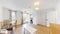 The flat boasts a spacious living room and dining area that maximizes natural light through floor-to-ceiling windows, providing an inviting and airy atmosphere. A fully fitted modern kitchen features sleek cabinetry and ample storage, ideal for both everyday cooking and entertaining.