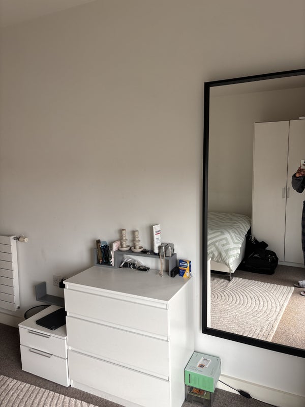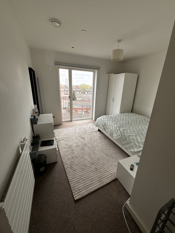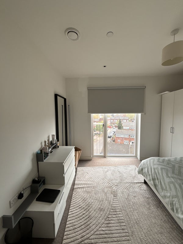 About the room: furnished with a double bed, large wardrobe, blackout curtains, chest of drawers, and 2 bedside chests. A beautiful window view with lots of natural light.
