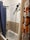 Over stairs storage, bathroom mats, ironing board, vacuum cleaner.
