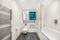 The interior boasts high-quality wooden flooring, creating a stylish and contemporary atmosphere. The well-proportioned bedroom is enhanced by full-height windows and bespoke double wardrobes, providing ample storage for your belongings. The bathroom is fully tiled and features a bathtub with an integrated shower, offering both comfort and convenience.