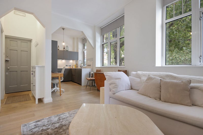 This beautiful flat has plenty of light with large windows and high ceilings. Engineered wood flooring is fitted throughout, Kitchen is fully integrated with dishwasher and washer dryer.