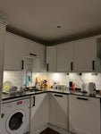 The room itself is a double, with wardrobe space and an armchair and overlooks a quiet garden — ideal if you’re looking for a comfortable base in a brilliant location. You’ll have access to a shared bathroom and a shared kitchen, which has a dining table and TV, making it a nice space to relax. The flat is fully equipped with a washing machine and super-fast internet.
