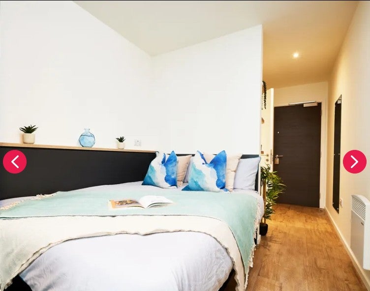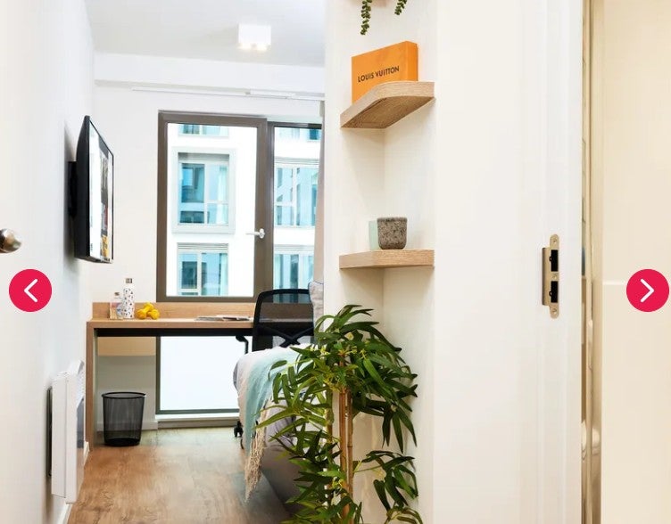 Double bed / Desk / Desk chair / Underbed storage / Opening window / Mirror / Wardrobe and storage / Smart TV