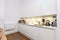 Open plan high quality kitchen with integrated German appliances, including dishwasher, oven, hob and washing machine.