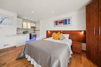 Studio in lovely building, furnished with double bed, desk, chair, kitchen with all appliances needed such as oven, microwave, kettle, fridge.