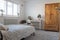 This airy room comes fully redecorated with high ceilings, large window and new furniture.
