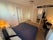 The flat has a comfortable living room with large windows and terrace access, a fully equipped kitchen, and a cleaning service that also takes the trash out for you, which makes day-to-day living very easy.