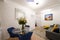 Expansive lounge with wood flooring and contemporary furniture