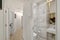 Smartly tiled bathroom with shower and WC