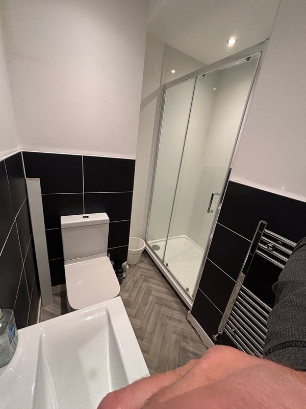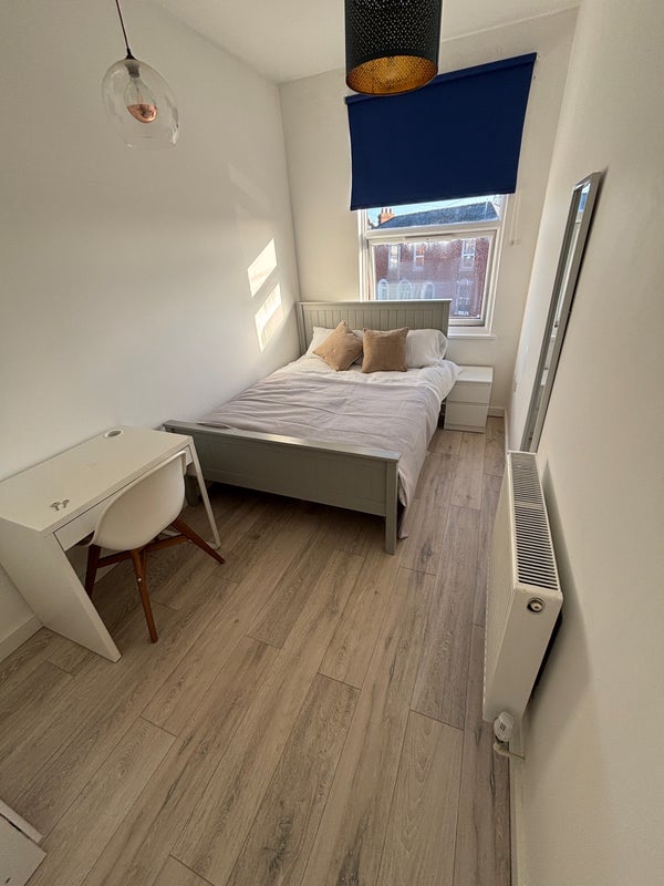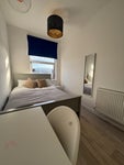 The bedroom has been fully decorated with new flooring and is furnished with double bed, wardrobe, chest of draws and desk. The shower room is right next to the bedroom shared with one other room.