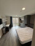 • Fully furnished studio with double bed, desk & chair, smart TV, and ample storage space