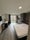 • Modern kitchenette with integrated appliances including fridge, microwave, and hob