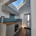 The studio features a newly fully fitted kitchen, including a washer–dryer, and a modern bathroom with a power shower.