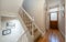 A large room with tons of natural daylight at the front of the house. Furnished with a double bed, desk and chair, chest of drawers, and a walk-in cupboard with shelving.