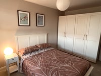 Beautifully furnished double bedroom with two double wardrobes, plus an additional single room perfect as a home office (includes a quality desk and chair). You’ll have use of a large bathroom with bath and shower.