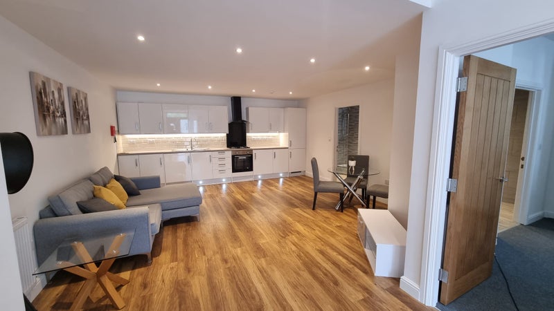 The flat benefits from a large open plan kitchen with integrated fridge freezer, washer dryer, oven and hob. Newly built with all modern fittings.