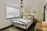 Bedrooms: Five generously sized rooms, each furnished with contemporary decor, ample storage, and workstations suitable for professionals.