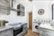 Kitchen - Fitted with modern wood effect wall and base units with contrasting work tops and laminate flooring, appliances to include electric oven and hob, extractor, washing machine, fridge and freezer