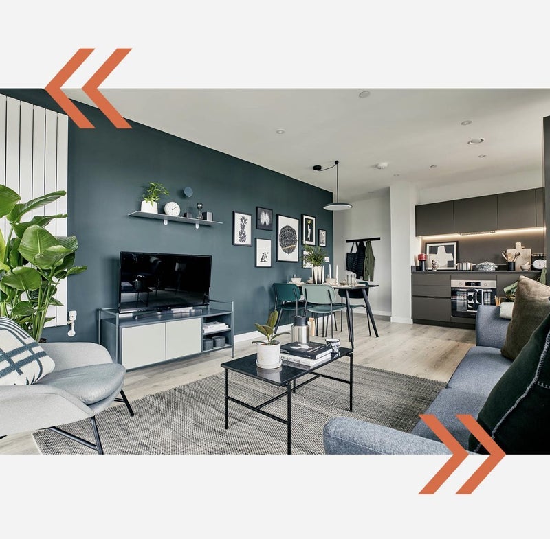 Shared living room, kitchen and balcony, plus communal spaces provided by Blackhorse Mills including a gym, pool, rooftop and option to hire out dining room spaces.