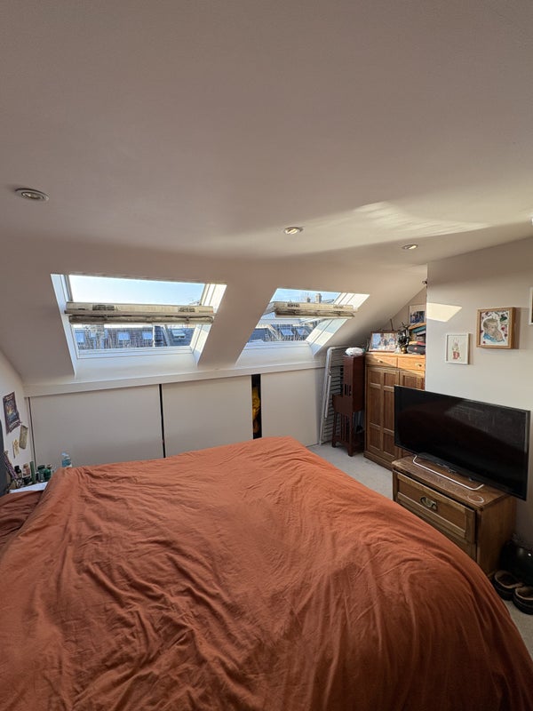 The room is incredibly spacious with a super king bed and benefits from lots of natural light. It also feels very private as it is the only room on the top floor. I’ve loved living here for the past 2 and a half years, only moving out now to live with my partner.