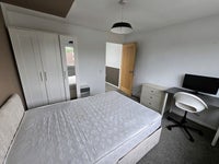 The room is spacious and well furnished. Furnishing includes; Bed & mattress with storage, Free standing wardrobe, Chest of Drawer, Bedside tables, Office desk and chair. The room is a very good size. Main Bathroom is Shared but will mainly be used by the lodger.